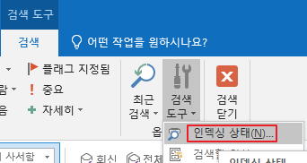 클릭한 뒤 [검색 도구] > [인덱싱 상태]를 차례로 누르면 현재 인덱싱 프로그램이 뭘 하고 있는지 나옵니다.